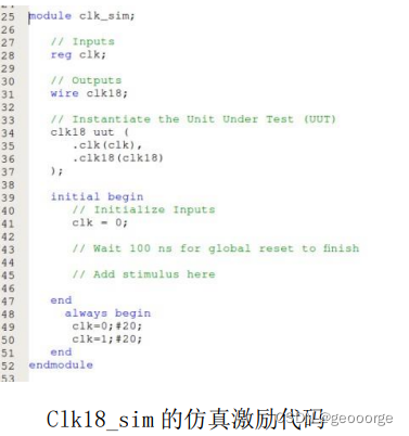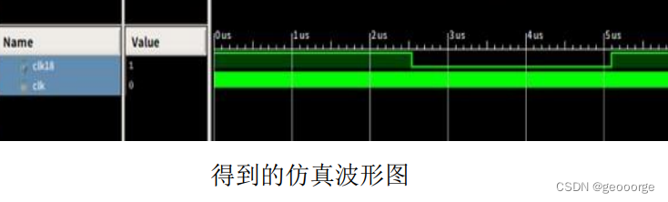 建立基准测试波形文件 clk18_sim.tbw,输入仿真激励信号,在 Process 窗口中选择 Simulate Behavioral Model,可以得到仿真波 形图: