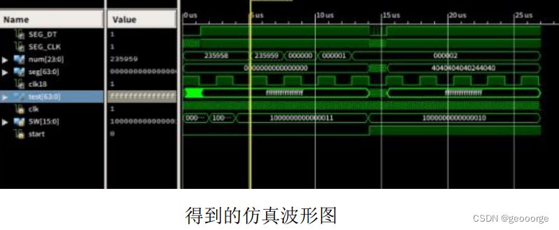 建立基准测试波形文件 top_sim.tbw,输入仿真激励信号,在 Process 窗口中选择 Simulate Behavioral Model,可以得到仿真波 形图: