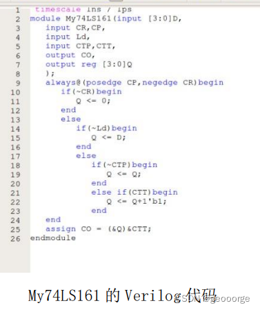 建立 HDL 类型的工程 My74LS161,创建 Verilog 文件 My74LS161, 输入 Verilog 代码