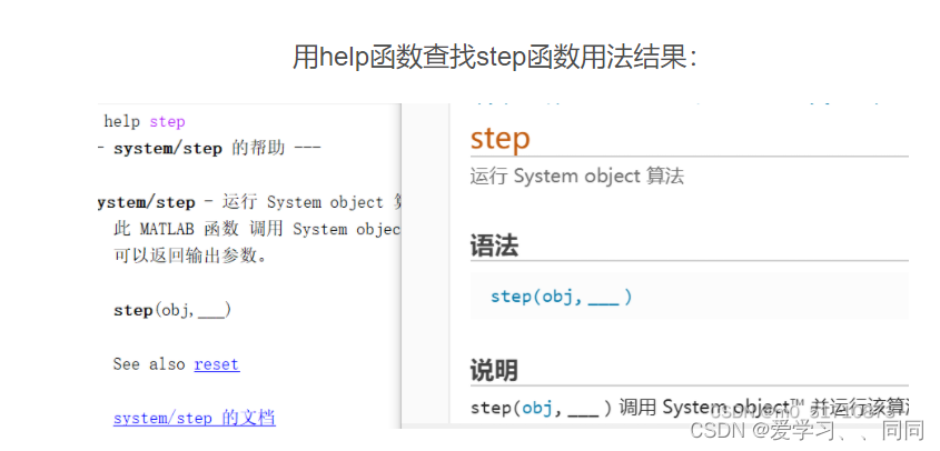 要的用help指令搜索用法,发现是系统里自带的step函数,不是我们需要的函数。如下图。