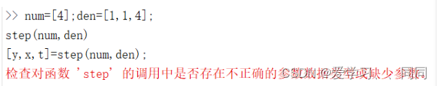 近日,做自控原理实验时用到函数step(a,b)。运行时发现无法完成绘图操作,报错如下: