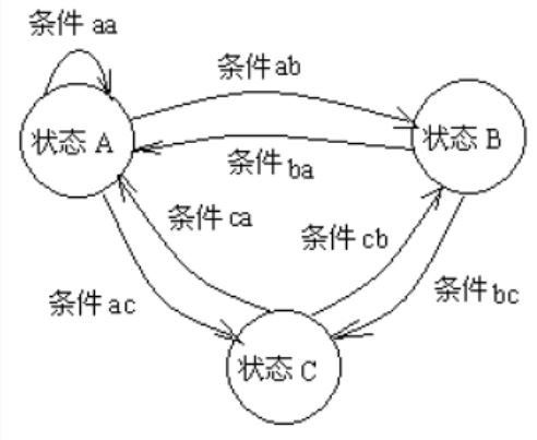 有限状态机是指系统中存在可数的状态,在某些事件发生时,系统从一个状态转换成另一个状态,故又称为事件驱动的系统。在有限状态机的描述中,可以设计出由一种状态转换至另一种状态的条件,并将每对可转换的状态均设计出状态迁移的事件,从而构造出状态迁移图。