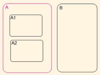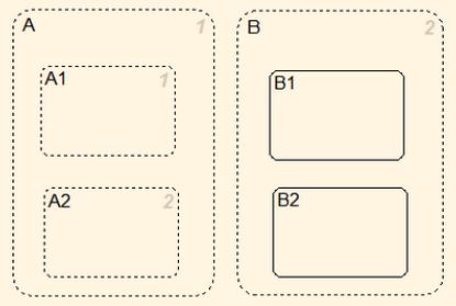 互斥状态的矩形框边缘都是实线,只能有一种状态被激活。当状态A被激活时,其子状态A1和A2也只能有一个被激活。