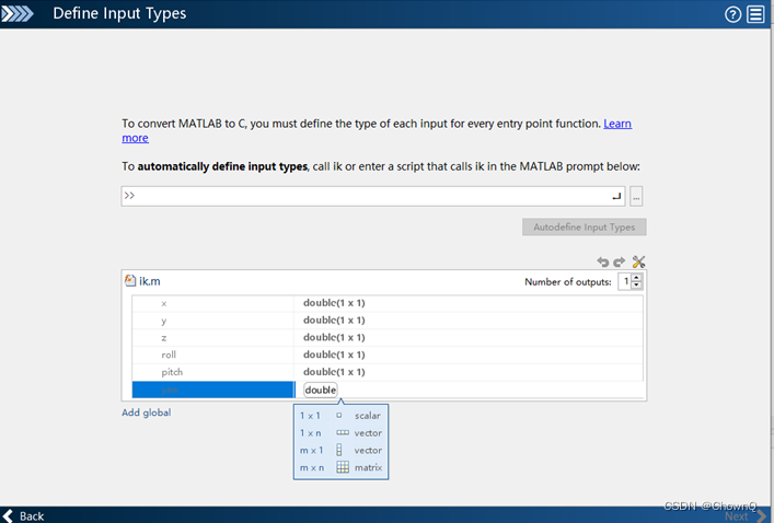 1、Matlab函数,输入(x,y,z,roll,pitch,yaw),输出out为8×6的数组