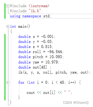 11、写main 函数,定义输入参数的类型和初始值,输出参数的类型。然后调用功能函数。