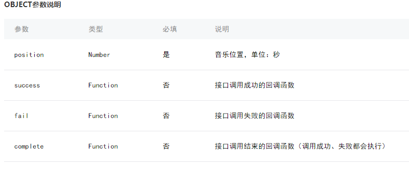 4.wx.seekBackgroundAudio(OBJECT)控制音乐播放进度。