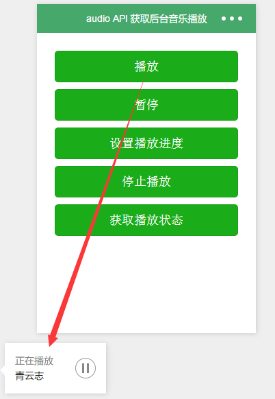 以上就是端庄春天最近收集整理的关于微信小程序之音乐控制播放(audio的API)的全部内容,更多相关微信小程序之音乐控制播放(audio内容请搜索靠谱客的其他文章。