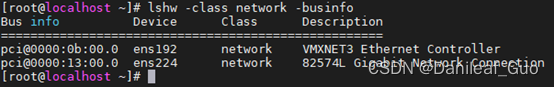 不知道大家注意到没有,我们在查看主机网卡的主线信息时,后面的描述信息是不一样的,可以理解为是主机的网卡信息,一个是VMXNET3类型,另一个是82574L类型。