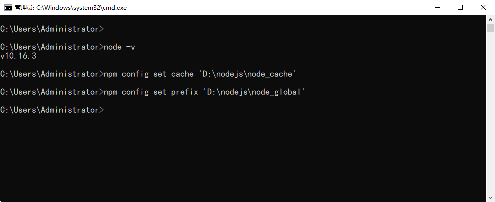 D:nodejs>npm config set prefix 'D:nodejsnode_global'