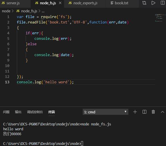 下面做了一个读取文本的代码 单线程应该先执行读取文本信息(我们6666) 在输出hello word