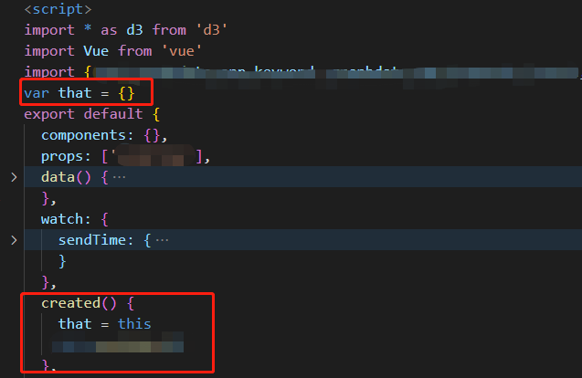 这里应该会注意到 that ,这个that使用的是全局变量,因为点击node节点的箭头函数里this不生效,所以设置了that代替this: