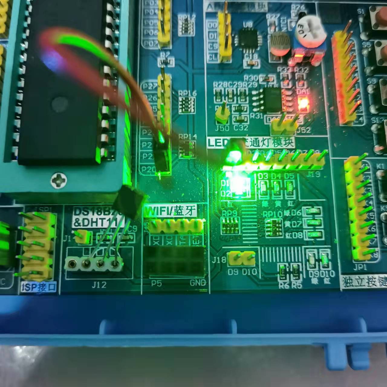 代码结构和逻辑很简单,首先定义控制 LED1 指示灯的管脚,然后定义定时器 0 中断配置函数 TIME1_INIT( ),然后进入 while 循环,在循环体内没有执行任何功能程序,知识等待定时器 0中断的产生。 当定时时间到达即会进入定时器 0 中断,在中断服务函数内,重新赋初值准备下次计数,并且定义一个静态变量来累计定时 1ms 次数,当变量等于 1000 时,表示定时时间达 1 秒,然后清零变量以及控制 LED 状态翻转,实现LED灯的亮灭。执行完成后退出中断,返回主函数,当时间到达又进入中断,如此循环。