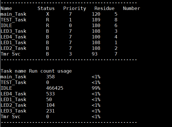 u1_printf("Task name Run count usagern");