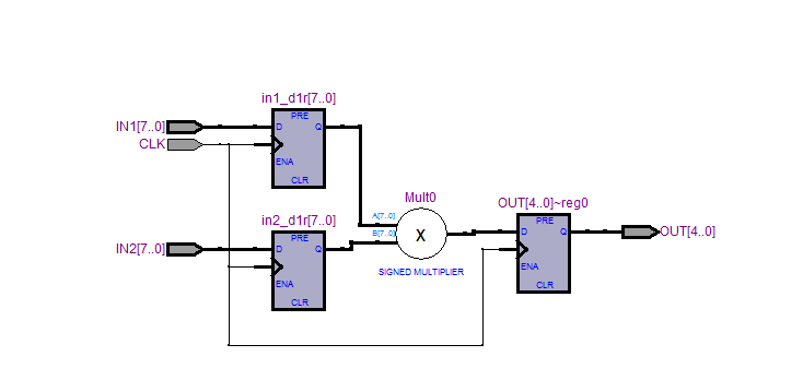 - 编写一个输入和输出都有D触发器的流水线乘法器代码,编译后波形仿真,观察组合逻辑延迟和毛刺的时间,和不带流水线的情况下对比。