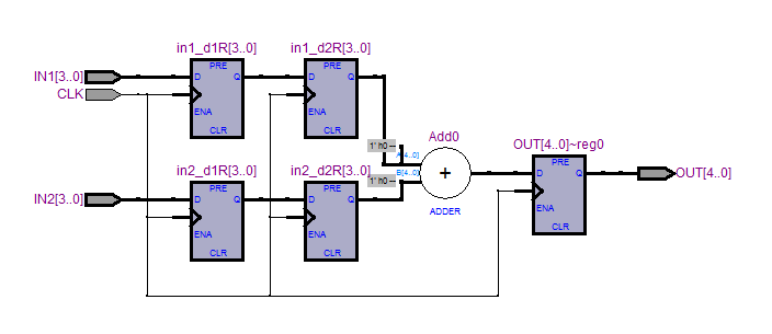 - 把加法器的输出信号改成4比特位宽,编译,波形仿真。观察输出结果,说出输出和输入的对应关系。