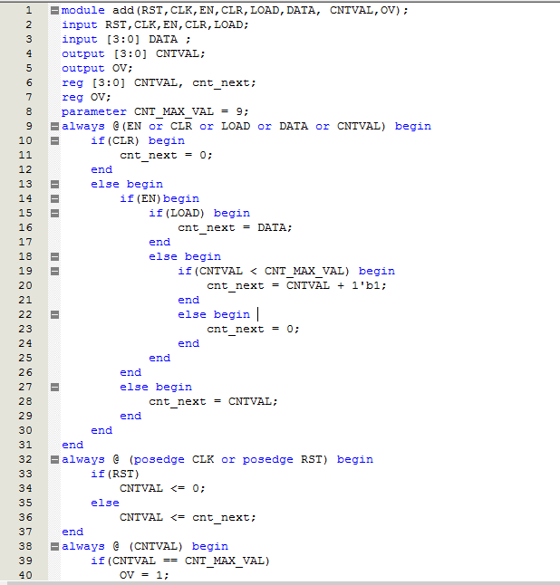 - 设计复杂的计数器,和本例相似,带有多种信号,其中同步清零CLR的优先级最高,使能EN次之,LOAD最低。
