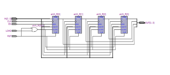 11. 设计一个如本节“电路描述”部分的“带加载使能和移位使能的并入串出”的移位寄存器,电路的RTL结构图如“电路描述”部分的RTL结构图所示。