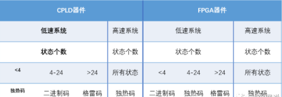 最后我们用一个表格来总结一下什么时候使用什么方式的编码效果最好(有时候不管你使用哪种编码方式,综合器会根据实际情况在综合时智能的给你进行编码的转换,当然这需要你设置额外的综合约束,这里我们不再详细讲解) 。