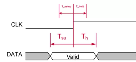 建立时间的门限(为了和建立时间区别开,所以简写为T_setup):时钟沿来到之前数据必须保持稳定的最小时间,芯片选定即决定,和制作工艺有关。