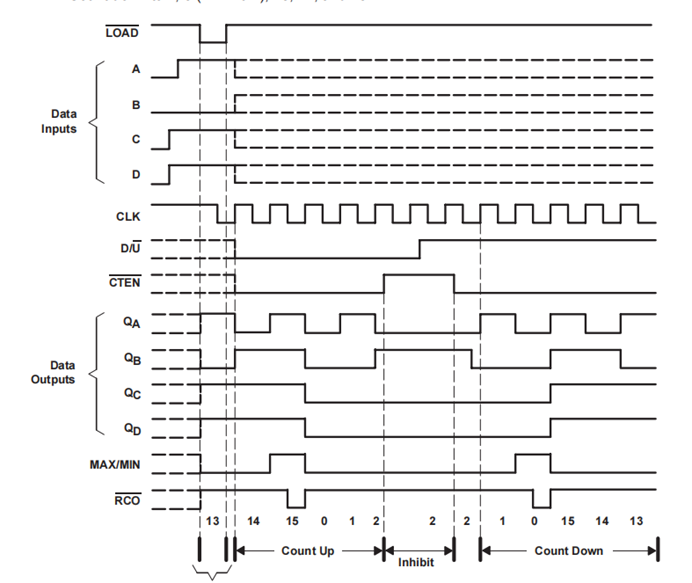 上图为191时序图,LOAD就是这个输入信号,与Data Inputs的四个输入端一起通过门电路,控制触发器的设置端复位端,来影响输出。