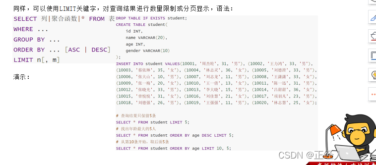 -- SELECT * FROM student ORDER BY age LIMIT 0,3 # 从第一条数据开始查3条数据