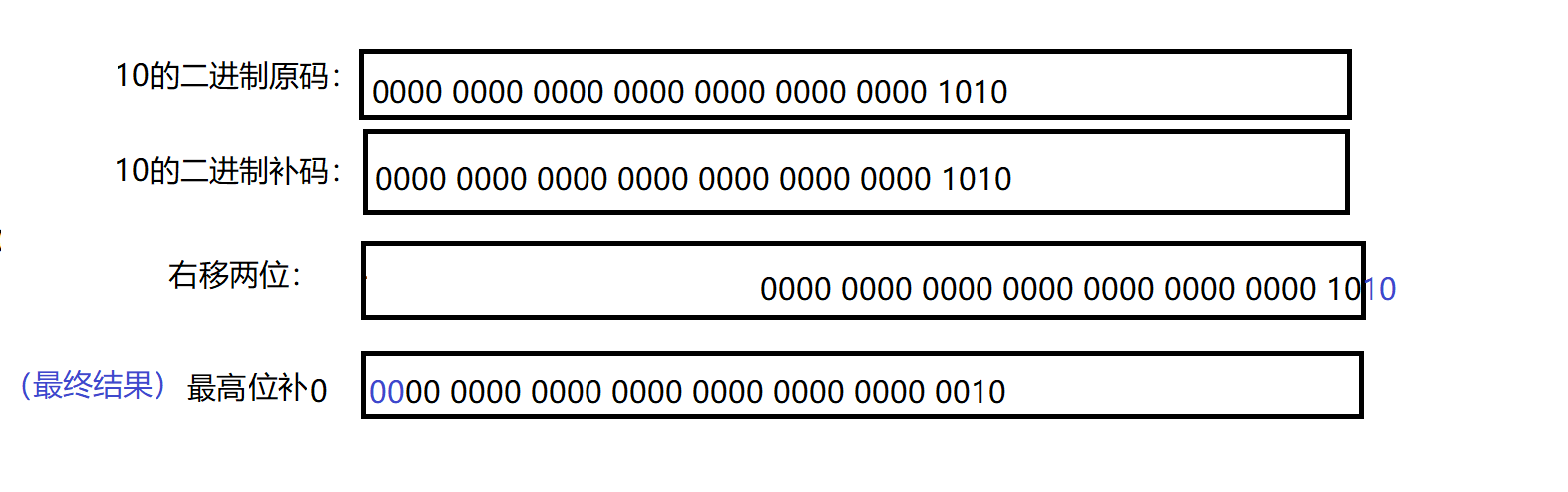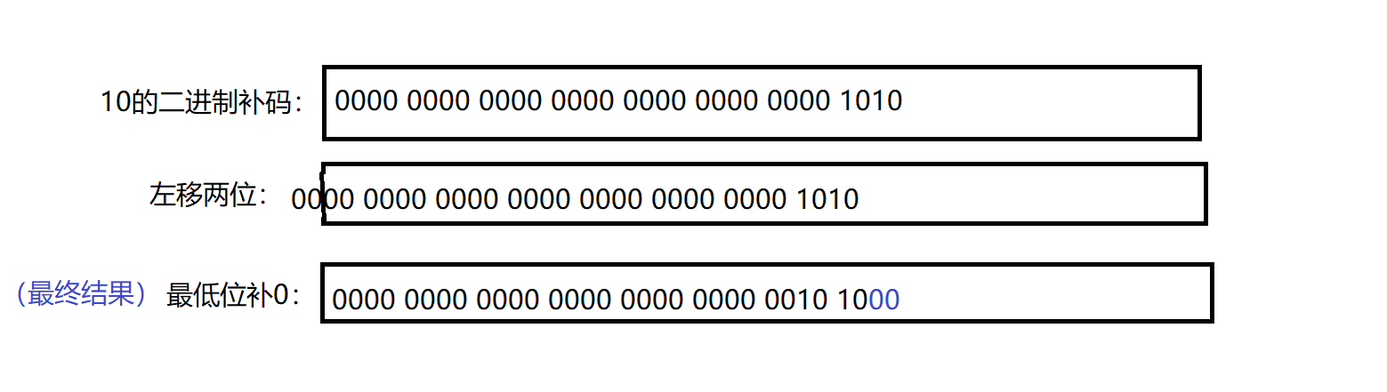 内存中10左移2位的变化图: