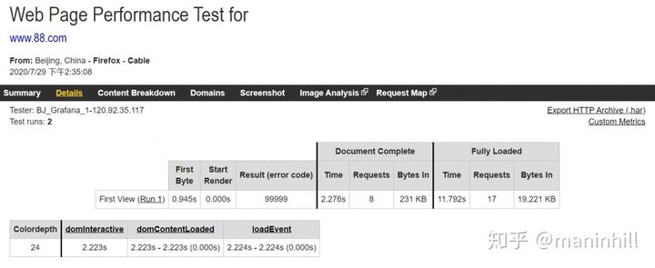 从资源加载时间、页面渲染、接口调用逻辑多方面分析Web页面性能。这这方面,通过http://www.webpagetest.org工具,测试首页资源加载、接口响应时长、页面渲染时间等数据记录页面性能。