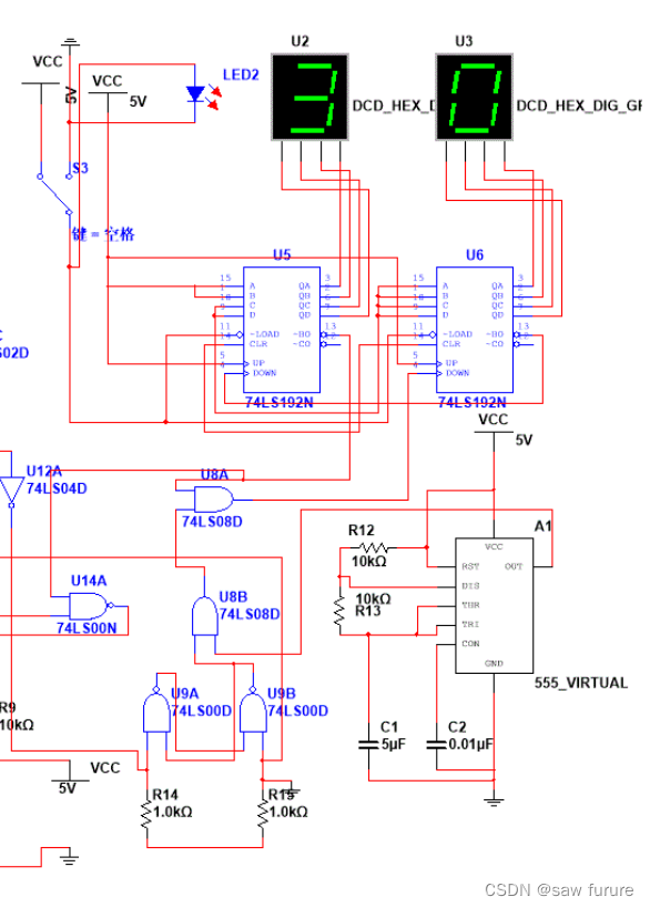 完成电路的初步设计对电路进行仿真调试观察和测量电路的性能指标并调整部分元件参达到 计时功能或参数的各项要求。