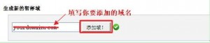 2, 点击“暂停域名”按钮之后,进入域名添加页面,在这里,我们可以把我们要添加的域名添加在生成新的暂定域下的方框里,然后点击“添加域!”如图所示: