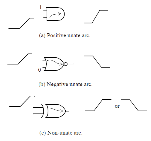 在或非门中,则会出现一种negative unate arc(反向);