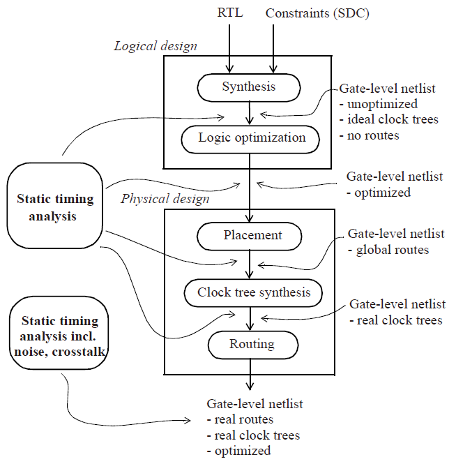 上图是数字电路设计流程的简单示意,STA可以在多个地方发挥作用。