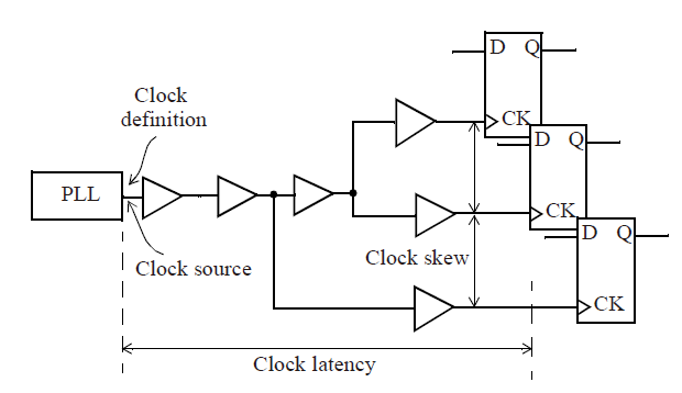 上图中,PLL的输出端是时钟源定义的位置,即为时钟产生的起点,经过clock buffer/clock inv pair之后到达寄存器(sink)。在后端工具中,时钟树的生长是从sink到root。