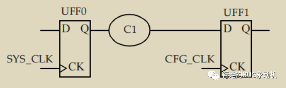 从图中可以看到,该电路为两个不同的clock domain SYS_CLK和CFG_CLK之间的path,根据上面约束可知,setup check的uncertainty是100ps,hold check的uncertainty是50ps