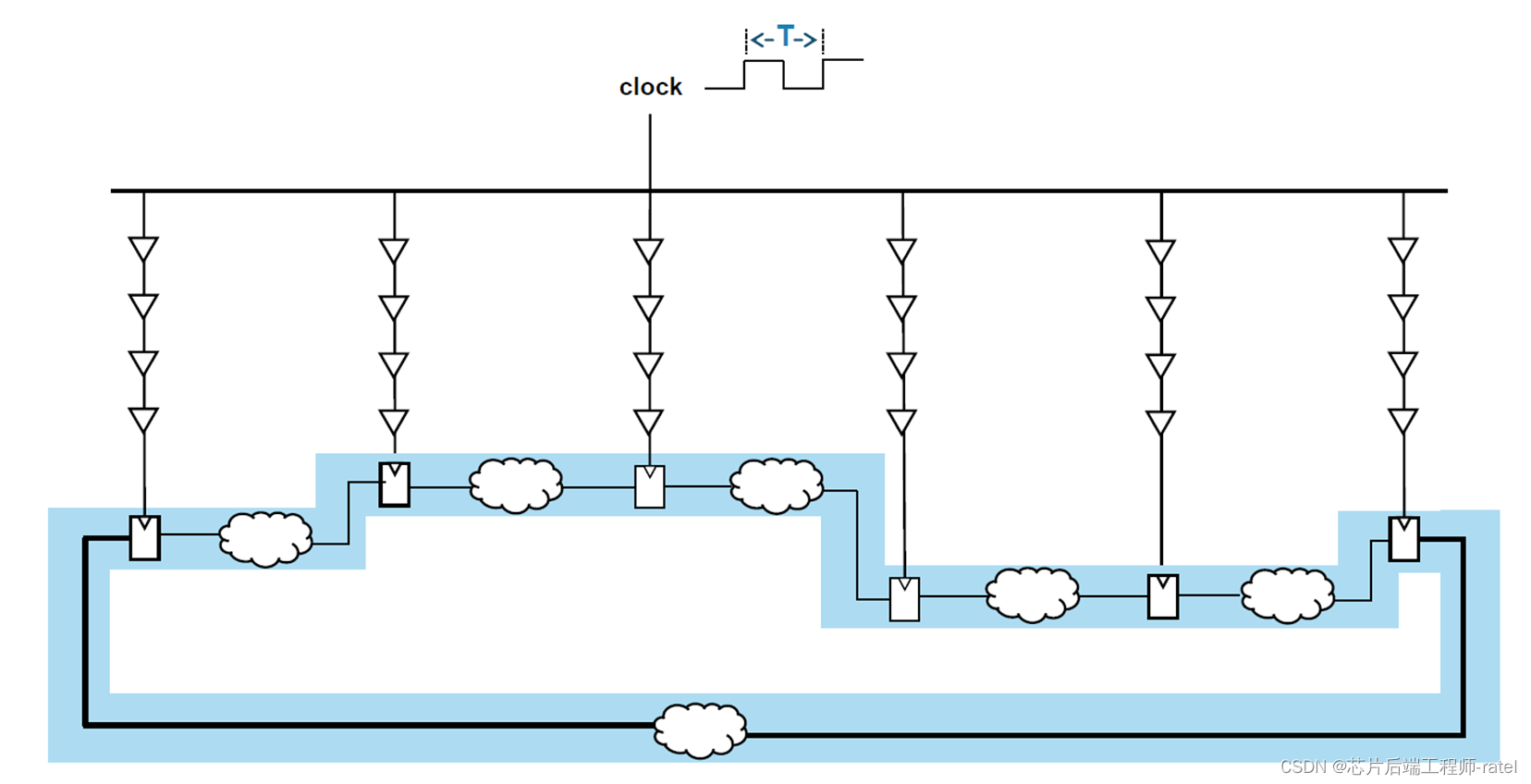 Dmin > 0 是一个永远成立的条件,在这个model下面,我们只需要保证logic path上的最大delay,也就是critical path上的delay比时钟周期快就行。