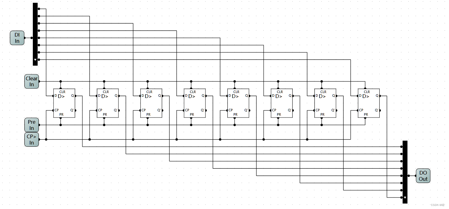 这里我们首先要做一个 1Byte的存储器 ,用八个边沿触发器