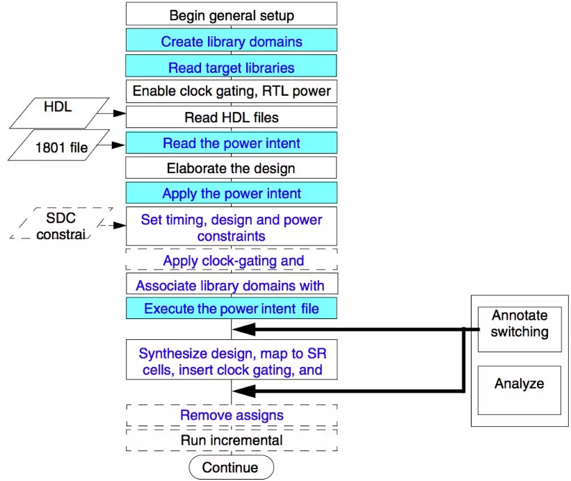 如下是Genus activity driven synthesis 的流程,相对于其它流程,只需要在elaborate 后读入activity 文件即可,需要特别注意的是反标率。