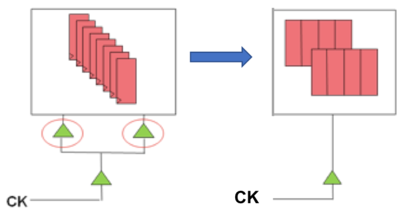 sink 点clock buffer 的节省,每个单比特寄存器clock pin 都可能有一个buffer,映射成多比特寄存器后,这些clock buffer就可以省掉。