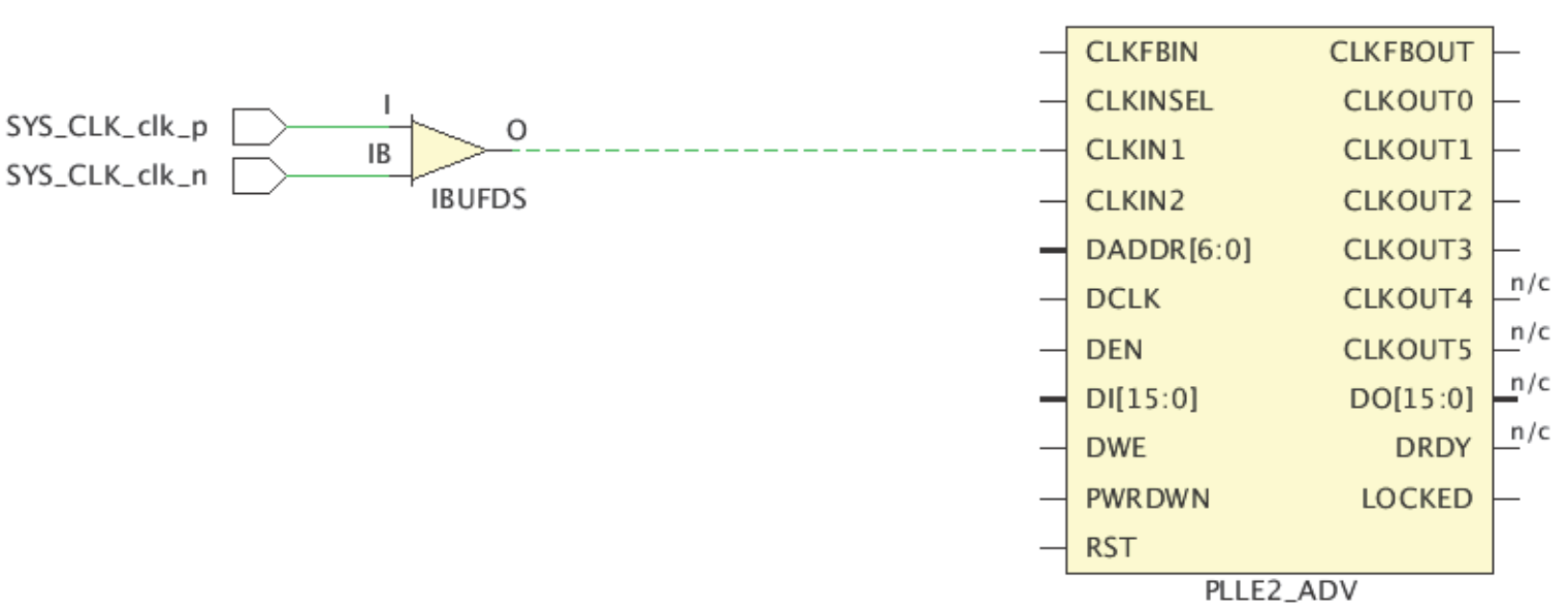 第三个例子如下图所示,采用差分时钟输入,这也是高速时钟的输入方式: