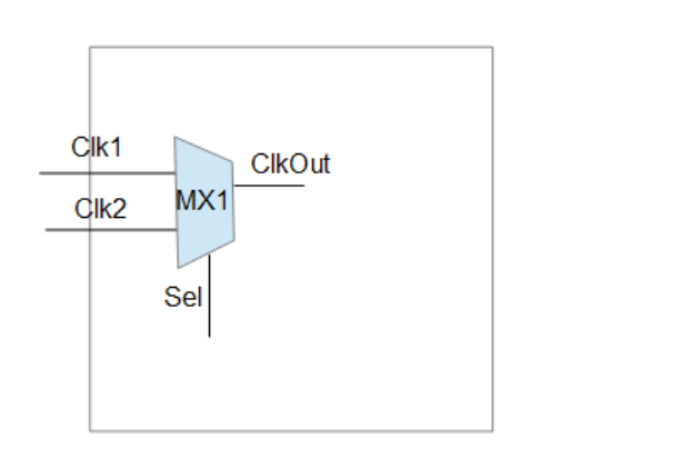 时钟 clkOut 通过Mux MX 的 Sel 进行选择,因此 Clk1 和 Clk2 在 MX1 的下游路径上不会逻辑上同时存在。它们在离开 MUX 之后不会相互作用。