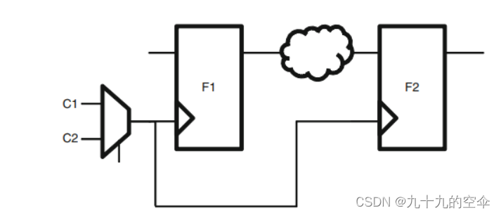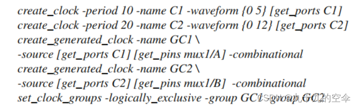 2.如果两个时钟C1和C2是physically exclusive的,那说明这两个时钟信号是不能共存于整个设计中的,最典型的例子就是两个时钟信号通过一个MUX输出。