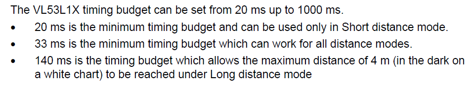 下图就是介绍不同的timing budget对应不同的距离,在程序编程中可以改变