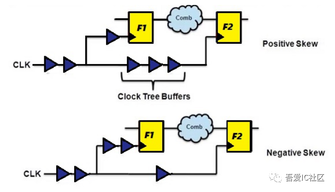 clock skew 主要是因为时钟 root 点到每个 sink 的距离不一致而导致它们的 clock tree latency 不一致。