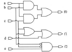 结构(Structuring)优化用共用子表达式来减少逻辑,这种方式既可用作速度优化又可用作面积优化。结构优化是DC默认的逻辑级优化策略。结构优化在作逻辑优化时,在电路中加入中间变量和逻辑结构。DC作结构优化时,寻找设计中的共用子表达式。例如,对于下面的电路,优化前为: