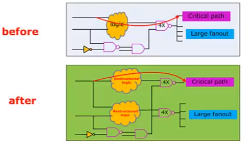 比如一个寄存器驱动多个寄存器时,可能会违反设计规则,DC会把就驱动寄存器进行复用,同时把被驱动的进行分割,如下图所示: