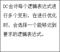 组合功能的映射的过程为:DC从目标库中选择组合单元组成设计,该设计能满足时间和面积的要求,如下图所示: