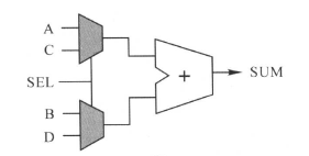 DC中经过资源共享之后,就会得到综合出仅用一个加法器和两个多路传输器的设计,如下图所示,从而节省资源: