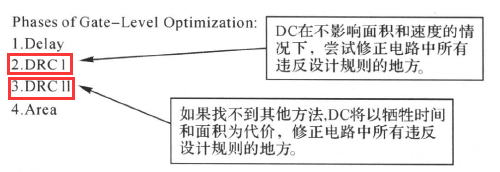 阶段1:延迟优化、阶段2:设计规则修整、阶段3:以时序为代价的设计规则修整、阶段4:面积优化。