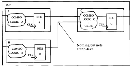 - 胶合逻辑是连接到模块的组合逻辑, 避免在top