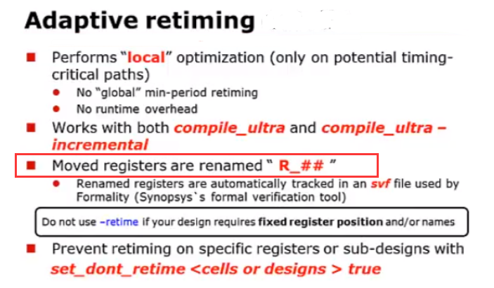 optimize_registers :适用于包含寄存器的门级网表(不是compile_ultra的开关选项)。