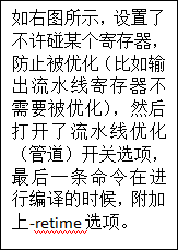 - 输出流水线寄存器不需要此类优化,主要是为了打拍 set_dont_retime
